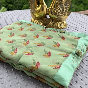 Sofiya Chiffon Printed Leaf Saree – Light Green