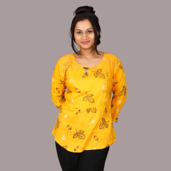 Hosiery Cotton Printed Ladies Top – XXL, Yellow