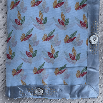 Sofiya Chiffon Printed Leaf Saree – Light Blue